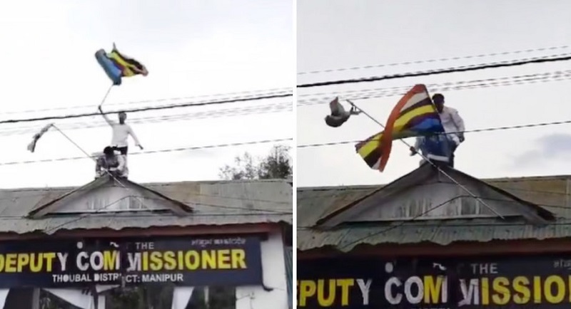 প্রাথমিক তথ্য অনুযায়ী, শিক্ষার্থীরা মণিপুরে ভারতের তেরঙা জাতীয় পতাকা নামিয়ে নতুন একটি সাতরঙা পতাকা উত্তোলন করেছে বলে জানা গেছে। ইস্টমোজো বলছে, রাজ্যের থাউবাল জেলার ডেপুটি কমিশনারের (ডিসি) কার্যালয়ে এই ঘটনা ঘটেছে। ভবনের ছাদে উঠে শিক্ষার্থীরা একটি সাত রঙের পতাকা উড়িয়েছে। এই ঘটনার সময় সেখানে উপস্থিত লোকজনকে উল্লাস প্রকাশ করতে দেখা যায়।