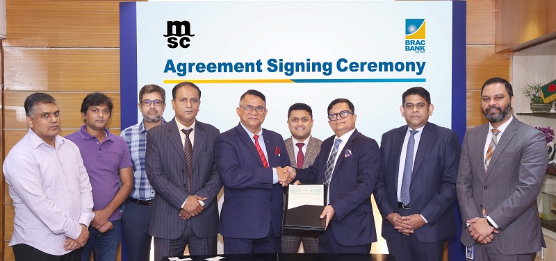 বিশ্বের বৃহত্তম কন্টেইনার শিপিং কোম্পানি ‘মেডিটারেনিয়ান শিপিং কোম্পানি (এমএসসি)’কে ক্যাশলেস ব্যাংকিং সুবিধা দিতে প্রতিষ্ঠানটির সঙ্গে একটি কৌশলগত চুক্তি স্বাক্ষর করেছে ব্র্যাক ব্যাংক।
