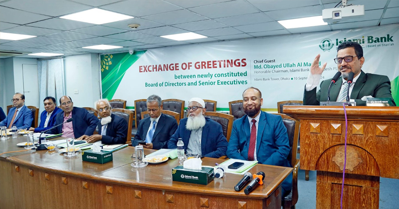 ইসলামী ব্যাংক বাংলাদেশ পিএলসির নবগঠিত পরিচালনা পর্ষদের সাথে প্রধান কার্যালয়ের নির্বাহীদের   মতবিনিময় সভা অনুষ্ঠিত হয়েছে। মঙ্গলবার (১০ সেপ্টেম্বর) ইসলামী ব্যাংক টাওয়ারে অনুষ্ঠিত এ সভায় ব্যাংকের চেয়ারম্যান মোঃ ওবায়েদ উল্লাহ আল এতে প্রধান অতিথি হিসেবে বক্তব্য প্রদান করেন।