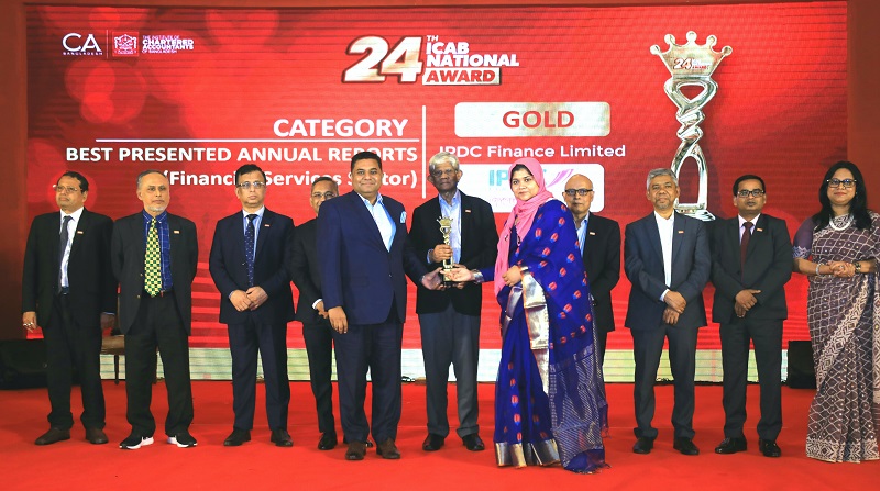 ২৪তম আইসিএবি ন্যাশনাল অ্যাওয়ার্ডে আর্থিক প্রতিষ্ঠান খাতে গোল্ড স্বীকৃতি অর্জন করেছে আইপিডিসি ফাইন্যান্স লিমিটেড। বাংলাদেশের চার্টার্ড অ্যাকাউন্ট্যান্টস ইনস্টিটিউট (আইসিএবি) আয়োজিত এই পুরস্কার আর্থিক প্রতিবেদন, সমন্বিত প্রতিবেদন ও কর্পোরেট গভর্ন্যান্স প্রকাশনায় উৎকর্ষতা তুলে ধরার জন্য প্রদান করা হয়।