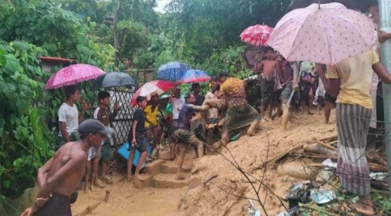 অন্যদিকে কক্সবাজার ত্রাণ ও প্রত্যাবাসন কমিশন কার্যালয়ের অতিরিক্ত কমিশনার শামসুদ দৌজা নয়ন জানান, ভারী বর্ষণে উখিয়া ১৪ নম্বর হাকিম পাড়া রোহিঙ্গা ক্যাম্পে পাহাড়ধসে তিনটি ঘর বিধ্বস্ত হয়েছে। এতে একই পরিবারের তিনজনের মৃত্যু হয়েছে। স্বেচ্ছাসেবকরা বিধ্বস্ত ঘর-বাড়িতে উদ্ধার তৎপরতা চালিয়ে যাচ্ছে।