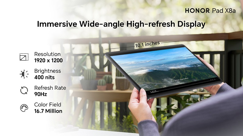 ৯০ হার্জ রিফ্রেশ রেটের ফলে ব্যবহারকারীরা সহজেই মসৃণ ও দ্রুত প্রতিক্রিয়া পাবেন, যা মুভি দেখা বা গেমিং অভিজ্ঞতাকে আরও উন্নত করে। এটি চারটি চোখ-সুরক্ষা প্রযুক্তি সংযোজিত, যেমন অ্যাবিয়েন্ট লাইট আই কেয়ার, যা প্রাকৃতিক আলো অনুসারে ডিসপ্লের আউটপুট সামঞ্জস্য করে এবং ই-ইঙ্ক মোড যা ডিভাইসটিকে পেপার পড়ার কাজের ব্যবহার করা যাবে। অনার প্যাড এক্স৮এ টিইউভি রেইল্যান্ডের লো ব্লু লাইট এবং ফ্লিকার ফ্রি সার্টিফিকেশন পেয়েছে যা দীর্ঘমেয়াদী ব্যবহারে চোখকে সুরক্ষিত রাখবে।