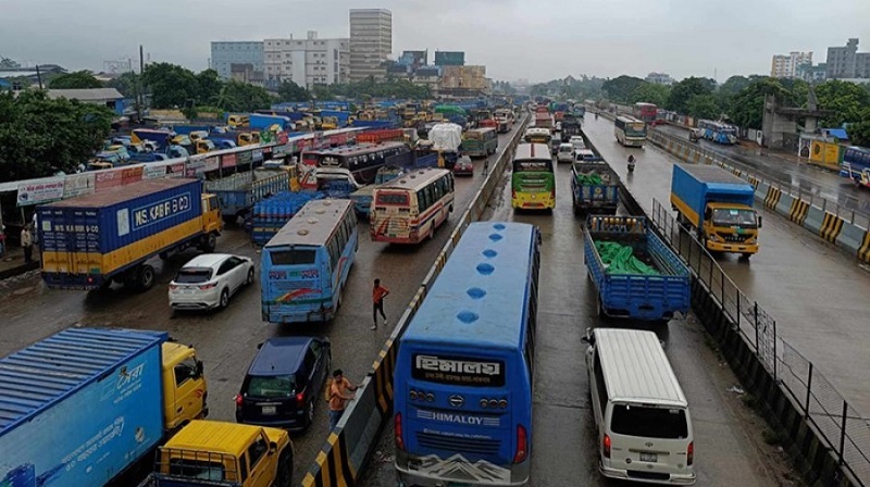 টানা বৃষ্টি ও যানবাহন বিকল হওয়ার ফলে ঢাকা-চট্টগ্রাম মহাসড়কের নারায়ণগঞ্জ অংশে প্রায় ১০ কিলোমিটার এলাকাজুড়ে যানজটের সৃষ্টি হয়েছে। এতে যাত্রী দুর্ভোগ চরম আকার ধারণ করেছে।