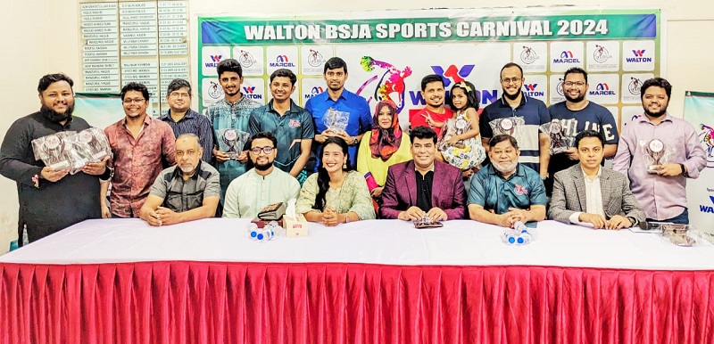 ‘ওয়ালটন-বিএসজেএ স্পোর্টস কার্নিভাল-২০২৪’ এর পর্দা নামলো। বৃহস্পতিবার (৩ অক্টোবর) সমাপনী ও পুরস্কার বিতরণী অনুষ্ঠানের মধ্য দিয়ে শেষ হয়েছে এই আয়োজন।