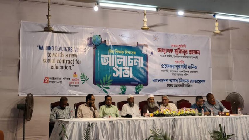 শনিবার (৫ অক্টোবর) জাতীয় প্রেস ক্লাব মিলনায়তনে বাংলাদেশ আদর্শ শিক্ষক ফেডারেশন ঢাকা মহানগর দক্ষিণের উদ্যোগে বিশ্ব শিক্ষক দিবসের আলোচনা সভায় এ কথা বলেন তিনি।