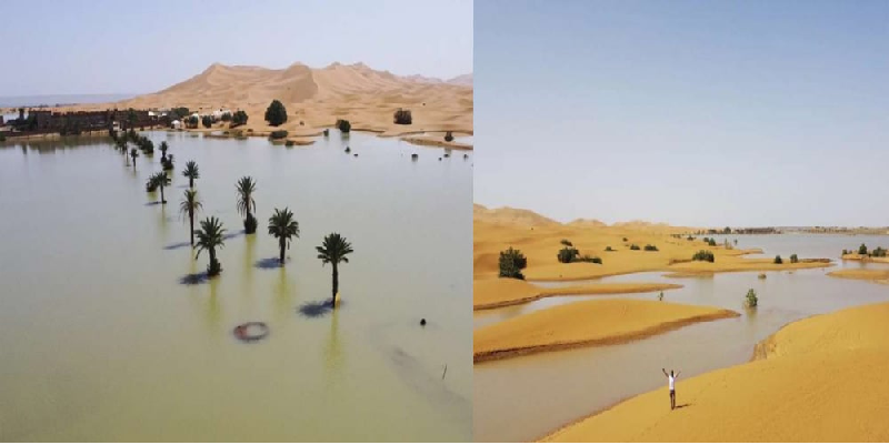 আফ্রিকা মহাদেশের উত্তরের দেশ মরক্কোর দক্ষিণ–পূর্ব অঞ্চলে দুই দিন ধরে ব্যাপক বৃষ্টির কারণে সাহারা মরুভূমির কিছু অংশে মারাত্মক বন্যা দেখা দিয়েছে। মরুভূমি এলাকায় এ ধরনের আকস্মিক বন্যার ঘটনা বিরল। মরক্কোর আবহাওয়া দপ্তরের কর্মকর্তারা বলেছেন, রাজধানী রাবাত থেকে ৪৫০ কিলোমিটার দূরের ত্যাগোইউনাইট গ্রামে গত সেপ্টেম্বর মাসে এক দিন ১০০ মিলিমিটার বৃষ্টির ঘটনা রেকর্ড করা হয়েছিল।