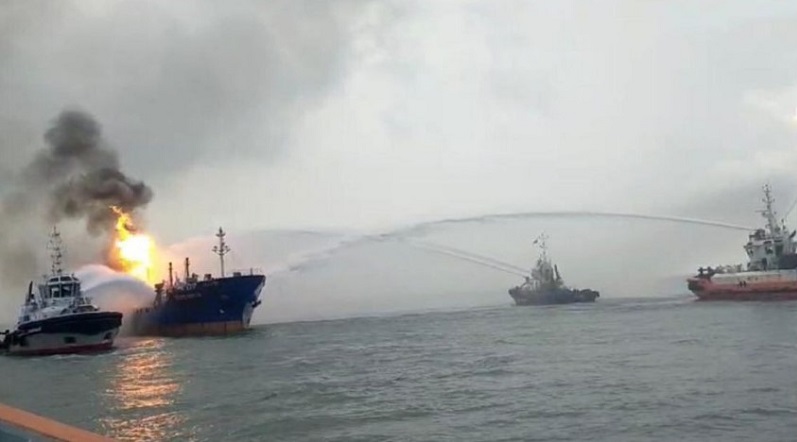 রোববার (১৩ অক্টোবর) ভোররাতে আগুন লাগে ট্যাংকারটিতে।