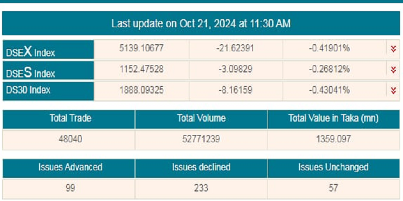 সূচকের পতনে চলছে লেনদেন