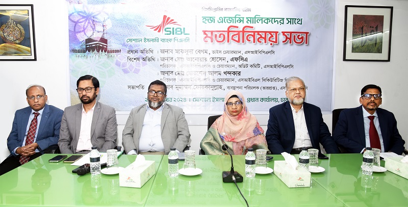 হজ্জ ও ওমরাহ যাত্রীদের সব ধরনের ব্যাংকিং সেবা সহজতর করার লক্ষ্যে সোশ্যাল ইসলামী ব্যাংক (এসআইবি) পিএলসি হজ্জ এজেন্সি মালিকদের সঙ্গে মতবিনিময় সভার আয়োজন করেছে। সভাটি সোমবার (২১ অক্টোবর) ব্যাংকের প্রধান কার্যালয়ে অনুষ্ঠিত হয়েছে।