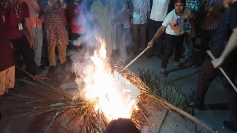 মঙ্গলবার (২২ অক্টোবর) রাত ৮টার দিকে এ ঘটনা ঘটে। এ সময় আগুনকে ঘিরে আন্দোলনকারীরা রাষ্ট্রপতির পদত্যাগের দাবিতে নানা স্লোগান দিতে থাকেন।