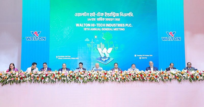 পুঁজিবাজারে প্রকৌশল খাতে তালিকাভুক্ত ওয়ালটন হাই-টেক ইন্ডাস্ট্রিজ পিএলসি’র ১৮তম বার্ষিক সাধারণ সভা (এজিএম) অনুষ্ঠিত হয়েছে। সভায় প্রাতিষ্ঠানিক ও সাধারণ বিনিয়োগকারীদের জন্য ৩৫০ শতাংশ নগদ লভ্যাংশ এবং উদ্যোক্তা ও পরিচালকদের জন্য ২০০ শতাংশ নগদ লভ্যাংশ সর্বসম্মতিক্রমে অনুমোদন করা হয়।