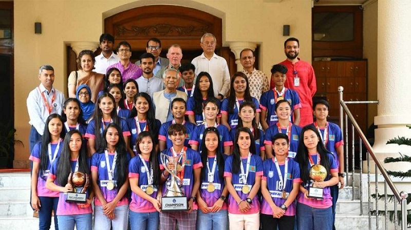 সাফ চ্যাম্পিয়নশিপ জয়ী বাংলাদেশ নারী ফুটবল দলকে সংবর্ধনা দিয়েছেন প্রধান উপদেষ্টা ড. মুহাম্মদ ইউনূস।
