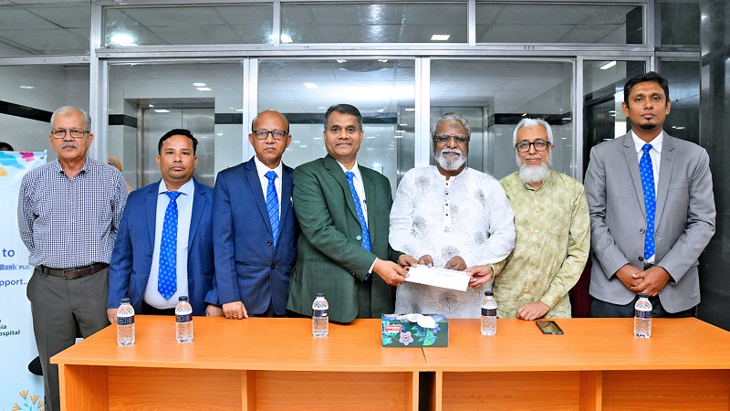 শাহ্জালাল ইসলামী ব্যাংকের এসইভিপি ও কোম্পানি সচিব মোঃ আবুল বাশার বাংলাদেশ থ্যালাসেমিয়া হাসপাতালের নির্বাহী পরিচালক ডা. এ. কে. এম একরামুল হোসাইন স্বপনের নিকট উক্ত অনুদানের চেক হস্তান্তর করেন।