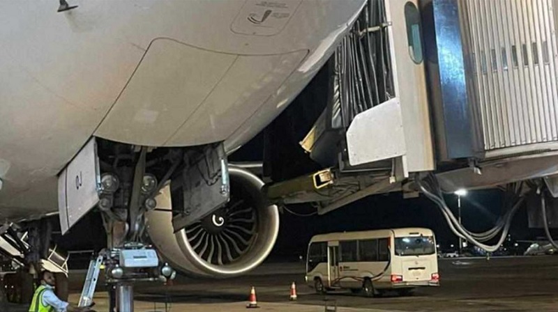 হযরত শাহজালাল আন্তর্জাতিক বিমানবন্দরের বোর্ডিং ব্রিজ-৬ হঠাৎ নিচে নেমে গিয়ে কুয়েত এয়ারওয়েজের একটি প্লেনের দরজা ভেঙে গেছে। তবে এতে কোনও হতাহতের ঘটনা ঘটেনি।