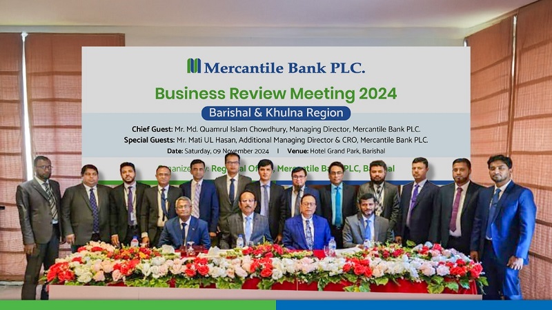 মার্কেন্টাইল ব্যাংকের ‘বিজনেস রিভিউ মিটিং-২০২৪’ অনুষ্ঠিত হয়েছে। গত শনিবার (০৯ নভেম্বর) বরিশালের হোটেল গ্র্যান্ড পার্কে মিটিংটি অনুষ্ঠিত হয়।