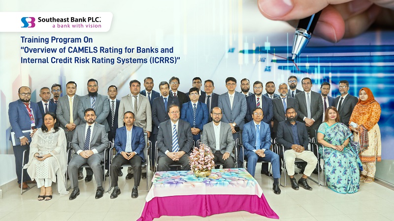 সাউথইস্ট ব্যাংক পিএলসি ব্যাংকের ক্যামেলস রেটিং এবং ইন্টারনাল ক্রেডিট রিস্ক রেটিং সিস্টেম (আইসিআরআরএস) বিষয়ক একটি প্রশিক্ষণ কর্মসূচির আয়োজন করেছে। গত বুধবার (১৩ নভেম্বর) ব্যাংকের ট্রেনিং ইনস্টিটিউটে হাইব্রিড পদ্ধতিতে প্রশিক্ষণটি অনুষ্ঠিত হয়।