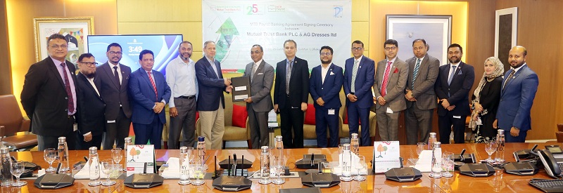 মিউচুয়াল ট্রাস্ট ব্যাংক পিএলসি (এমটিবি) সম্প্রতি এজি ড্রেসেস লিমিটেড, পিনাকী গ্রুপের সঙ্গে তার কর্মচারীদের পে-রোল ব্যাংকিং সেবা প্রদানের জন্য একটি চুক্তি স্বাক্ষর করেছে।