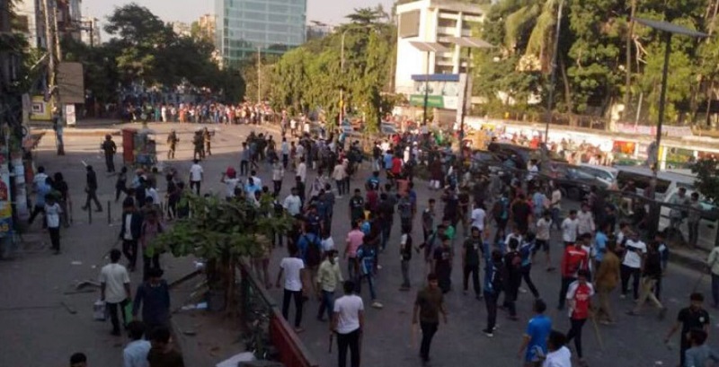 সিটি কলেজের শিক্ষার্থীদের তাদের কলেজের প্রধান ফটকের সামনে এবং ঢাকা কলেজের শিক্ষার্থীরা সায়েন্সল্যাব মোড় এলাকায় অবস্থান নিয়েছেন। কিছুক্ষণ পরপরই একপক্ষ আরেকপক্ষকে ধাওয়া করছেন, ইট-পাটকেল ছুড়ছেন। এতে বেশ কয়েকজন আহত হয়েছেন।