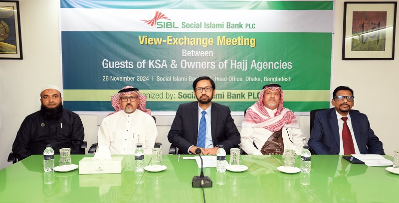 আন্তরিকতা, নিষ্ঠা ও দক্ষতার সাথে সর্বোচ্চ অগ্রাধিকার দিয়ে হজযাত্রীদের সব ধরনের ব্যাংকিং সেবা প্রদান নিশ্চিত করার লক্ষ্যে সোশ্যাল ইসলামী ব্যাংক (এসআইবি) পিএলসি সৌদি মুয়াল্লিম ও হজ এজেন্সী মালিকদের সাথে মতবিনিময় সভার আয়োজন করেছে। মঙ্গলবার (২৬ নভেম্বর) ব্যাংকের প্রধান কার্যালয়ে সভাটি অনুষ্ঠিত হয়।