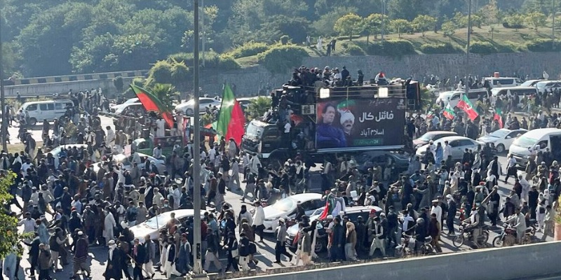 পাকিস্তানের সংবাদমাধ্যম জানিয়েছে, ইমরান খানের স্ত্রী বুশরা বিবির নেতৃত্বাধীন বিশাল বহর ইসলামাবাদের জিরো পয়েন্টে এসে পৌঁছেছে। তারা সেখানে পৌঁছানোর পর তাদের লক্ষ্য করে কাঁদানে গ্যাস ছোড়া হয়। অপরদিকে ইমরানের সমর্থকদের আইনশৃঙ্খলা রক্ষাকারী বাহিনীর সদস্যদের লক্ষ্য করে ইটপাটকেল নিক্ষেপ করতে দেখা গেছে।