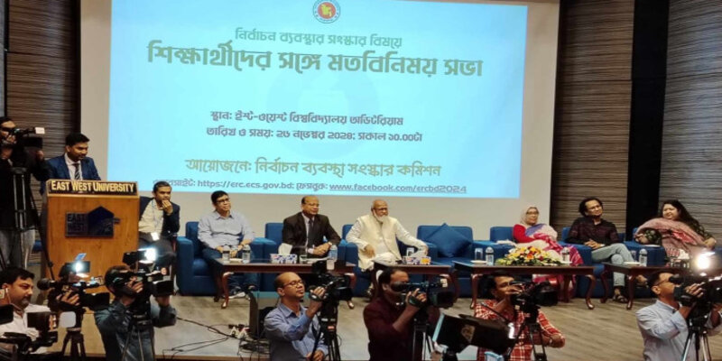 মঙ্গলবার (২৬ নভেম্বর) রাজধানীর একটি বেসরকারি বিশ্ববিদ্যালয়ে নির্বাচনি সংস্কার কমিশন শিক্ষার্থীদের সঙ্গে মতবিনিময় সভার আয়োজন করে। বিভিন্ন বিশ্ববিদ্যালয় ও প্রতিষ্ঠানের শিক্ষার্থীরা উপস্থিত থেকে কমিশনের কাছে তাদের প্রস্তাব তুলে ধরেন।