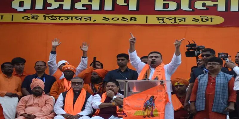 গতকাল বৃহস্পতিবার বিকেলে কলকাতার ধর্মতলার রাণী রাসমণি অ্যাভিনিউতে ৫০টি সনাতনী সংগঠনের ডাকে আয়োজিত প্রতিবাদ সমাবেশে এই ডাক দেন শুভেন্দু অধিকারী। তিনি বলেন, বাংলাদেশের হিন্দুদের ওপর অত্যাচার বন্ধ করতে হবে। গোটা দেশে শান্তি প্রতিষ্ঠা করতে হবে এবং কারাবন্দী ইসকন নেতা চিন্ময় কৃষ্ণ দাসকে অবিলম্বে মুক্তি দিতে হবে।