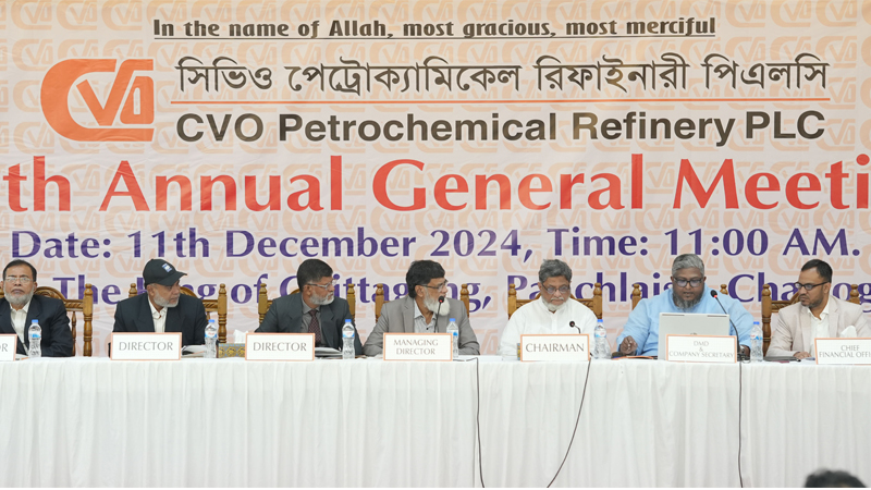 পুঁজিবাজারের তালিকাভুক্ত কোম্পানি সিভিও পেট্রোক্যামিকেল রিফাইনারী পিএলসির ৩৯তম বার্ষিক সাধারণ সভা (এজিএম) অনুষ্ঠিত হয়েছে। আজ বুধবার (১১ ডিসেম্বর) হাইব্রিড প্ল্যাটফর্মে দ্যা কিং অব চিটাগাং-এ এবং অনলাইনে লাইভ ওয়েবকাস্টে এ সভা অনুষ্ঠিত হয়।