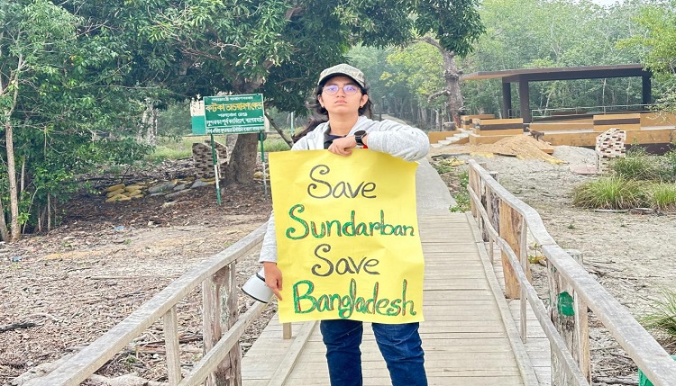 বাংলাদেশের ফুসফুস হিসেবে বিবেচিত সুন্দরবন রক্ষায় প্রচারণা চালিয়েছে কিশোর পরিবেশ অধিকার কর্মী ও ওয়াইল্ডলাইফ ফটোগ্রাফার তাসফিয়া তাহসিন পূর্ণতা। গত বৃহস্পতি, শুক্র ও শনিবার বনের বিভিন্ন পয়েন্টে এ প্রচারণা চালানো হয়। স্থানীয় জনগণ, জেলে, ট্যুর অপারেটর ও পর্যটকদের মধ্যে সচেতনতা বৃদ্ধির লক্ষ্যে এ প্রচারণা চালিয়েছে সে।