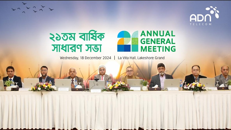 পুঁজিবাজারে তালিকা ভুক্ত কোম্পানি এডিএন টেলিকম লিমিটেডের ২১তম বার্ষিক সাধারণ সভা (এজিএম) অনুষ্ঠিত হয়েছে।