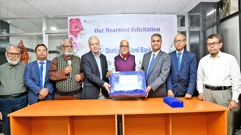 বাংলাদেশ থ্যালাসেমিয়া হাসপাতালের রোগীদের জন্য শীতবস্ত্র প্রদান করল শাহ্জালাল ইসলামী ব্যাংক পিএলসি। সোমবার (২৩ ডিসেম্বর) বাংলাদেশ থ্যালাসেমিয়া হাসপাতালে আয়োজিত এক অনুষ্ঠানের মাধ্যমে শাহ্জালাল ইসলামী ব্যাংকের এসইভিপি ও কোম্পানি সচিব মোঃ আবুল বাশার বাংলাদেশ থ্যালাসেমিয়া হাসপাতালের উপদেষ্টা সাইদ দিদার বখত এর নিকট শীতবস্ত্র হিসেবে কম্বল হস্তান্তর করেন।