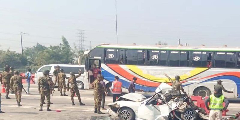 তারা জানান, আজ বেলা ১১টার দিকে এক্সপ্রেসওয়েতে টোল পরিশোধের জন্য দাঁড়িয়ে থাকা মোটরসাইকেল, মাইক্রোবাস ও প্রাইভেট কারকে পেছন থেকে ঢাকা-কুয়াকাটা রুটের ব্যাপারী পরিবহনের একটি বাস ধাক্কা দেয়। এতে সামনে থাকা গাড়িগুলো দুমড়েমুচড়ে যায়। এ সময় প্রাইভেটকারের ভেতরে আটকা পড়ে ঘটনাস্থলেই নিহত হন একজন। বাকিদের ঢাকা নেওয়ার পথে মৃত্যু হয় বলে জানা গেছে।