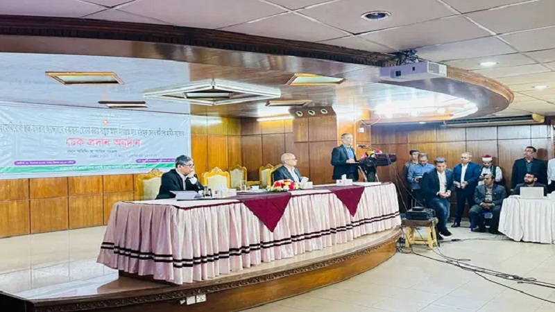 এরপর সবাই শান্ত হলে শুরু হয় চেক বিতরণ অনুষ্ঠান। কয়েকজনের হাতে আনুষ্ঠানিকভাবে চেক তুলে দেন উপদেষ্টা। পরে বাকিদের মধ্যে চেক বিতরণ করেন কল্যাণ বোর্ডের কর্মকর্তারা।