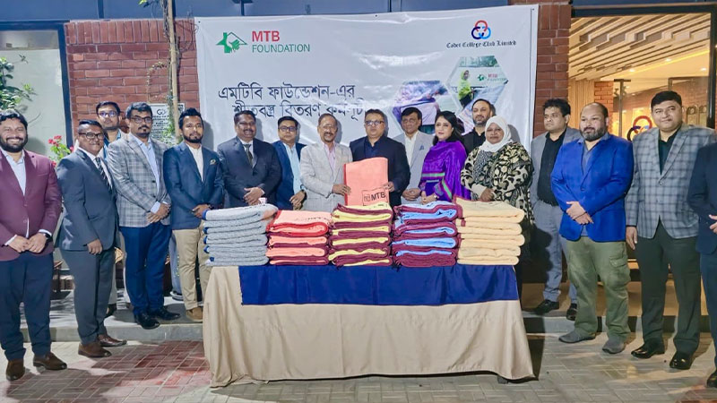 এমটিবি ফাউন্ডেশন সম্প্রতি সামাজিক দায়বদ্ধতা কর্মসূচীর অংশ হিসেবে, দেশের বিভিন্ন অঞ্চলের শীতার্ত মানুষের মাঝে বিতরণের জন্য ক্যাডেট কলেজ ক্লাব লিমিটেডকে কম্বল প্রদান করেছে।