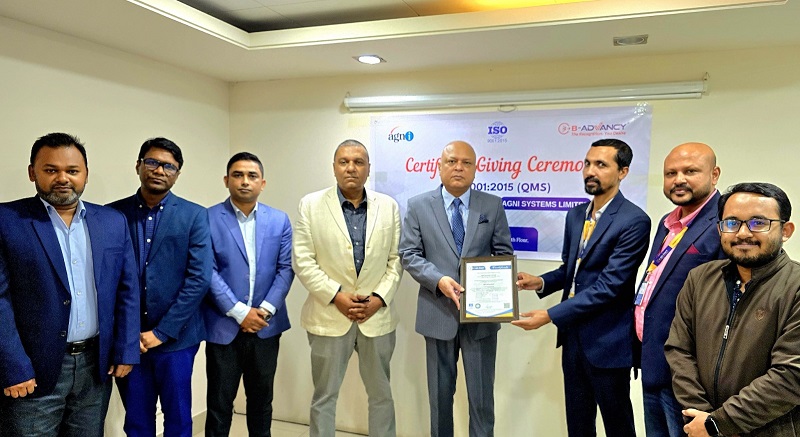 দেশের অন্যতম ইন্টারনেট ও ডাটা কানেক্টিভিটি সেবাদানকারী প্রতিষ্ঠান অগ্নি সিস্টেমস লিমিটেড আন্তর্জাতিকভাবে স্বীকৃত আইএসও ৯০০১:২০১৫ কোয়ালিটি ম্যানেজমেন্ট সিস্টেম সনদ অর্জন করেছে। সম্প্রতি অগ্নি সিস্টেমসের প্রধান কার্যালয়ে আয়োজিত এক অনুষ্ঠানে প্রতিষ্ঠানটির ব্যবস্থাপনা পরিচালক মোঃ আব্দুস সালাম বি-অ্যাডভান্সির পরিচালক আলমগীর হোসেন মিল্কীর কাছ থেকে সনদ গ্রহণ করেন।