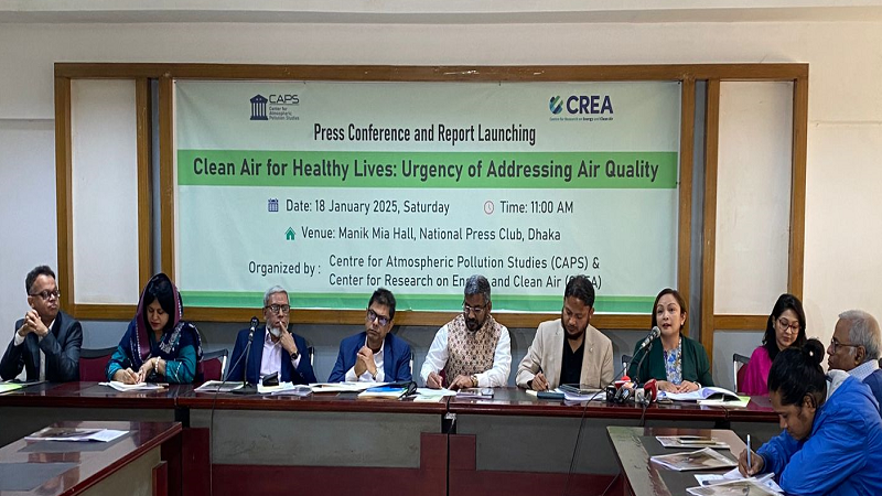 শনিবার (১৮ জানুয়ারী) সকাল ১১ টায় বায়ুমন্ডলীয় দূষণ অধ্যয়ন কেন্দ্র (ক্যাপস) এবং সেন্টার ফর রিসার্চ অন এনার্জি অ্যান্ড ক্লিন এয়ার’র (সিআরইএ) যৌথ আয়োজনে জাতীয় প্রেস ক্লাবের মানিক মিয়া হলে “ক্লিন এয়ার ফর হেলদি লাইভস: আর্জেনসি অব অ্যাড্রেসিং এয়ার কোয়ালিটি” শীর্ষক সংবাদ সম্মেলন ও রিপোর্ট লঞ্চিং অনুষ্ঠানে বক্তারা এসব কথা তুলে ধরেণ।