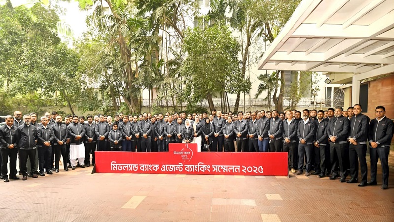 মিডল্যান্ড ব্যাংক পিএলসি জনসাধারণের মাঝে আধুনিক ব্যাংকিং সেবা পৌঁছে দিতে এজেন্ট ব্যাংকিং সম্মেলন ২০২৫ অনুষ্ঠিত হয়েছে। শনবিার (১৮ জানুয়ারি) ঢাকার গুলশানে অবস্থিত লেকশর হোটেলে মিডল্যান্ড ব্যাংকের বার্ষিক সম্মেলনটি অনুষ্ঠিত হয়।