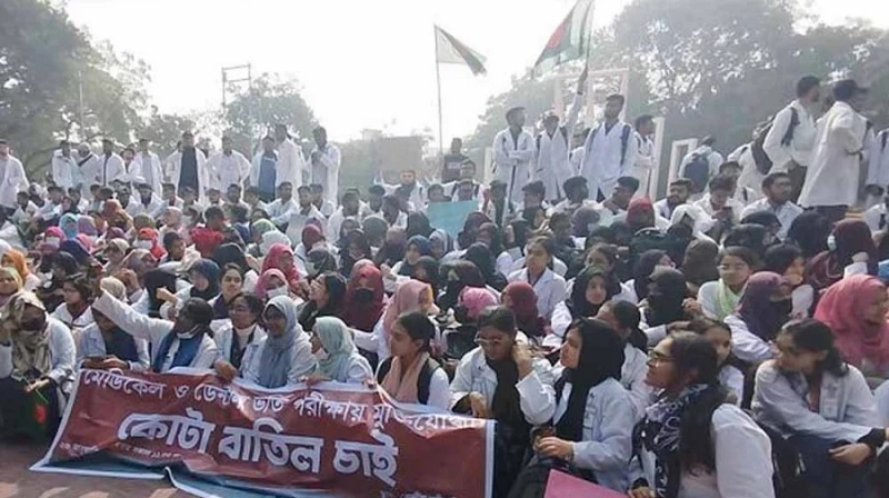 মেডিকেল ও ডেন্টালে ভর্তি পরীক্ষায় কোটা বাতিলের দাবিতে কেন্দ্রীয় শহীদ মিনারে অবস্থান নিয়েছেন মেডিকেল কলেজের শিক্ষার্থীরা। এ সময় সর্বস্তরের মেডিকেল ও ডেন্টাল শিক্ষার্থী এবং চিকিৎসকবৃন্দ এবং সর্বস্তরের শিক্ষার্থীবৃন্দ ব্যানারে তাদের অবস্থান নিতে দেখা যায়।