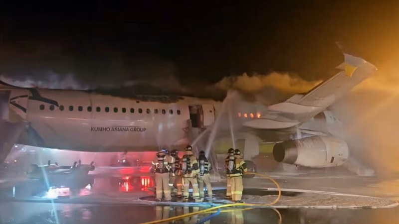 দেশটির বার্তা সংস্থা ইয়োনহাপের প্রতিবেদনে বলা হয়েছে, দক্ষিণপূর্বাঞ্চলীয় বুসান শহরের বিমানবন্দরে যাত্রীবাহী বিমানে আগুন ধরে গেছে। তবে নিরাপত্তা কর্মীরা কেবিন ক্রু-সহ ১৭৬ আরোহীকে বিমান থেকে নিরাপদে সরিয়ে নিয়েছেন।