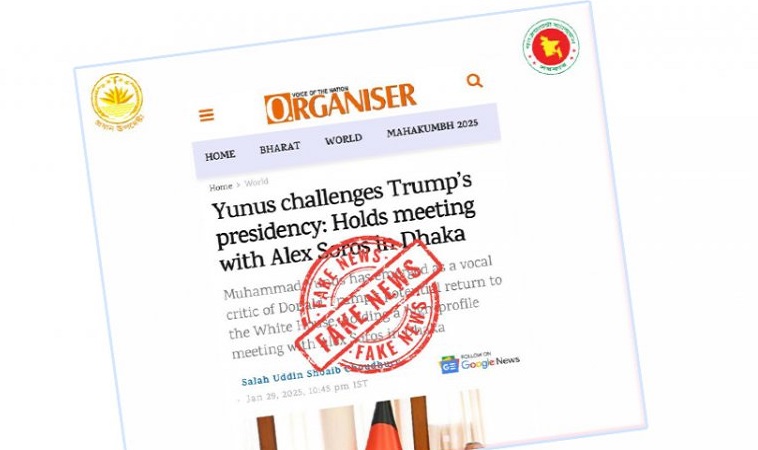 দ্য অর্গানাইজার-এর সর্বশেষ অপপ্রচার হলো বাংলাদেশের প্রধান উপদেষ্টা মুহাম্মদ ইউনূস এবং ওপেন সোসাইটি ফাউন্ডেশনের সভাপতি অ্যালেক্স সোরোসের মধ্যে বৈঠককে যুক্তরাষ্ট্রের প্রেসিডেন্ট ডোনাল্ড ট্রাম্পের বিরুদ্ধে একটি চ্যালেঞ্জ হিসেবে তুলে ধরা।