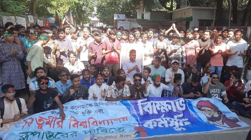 দাবি মানা না হলে বৃহস্পতিবার থেকে মহাখালীতে সড়ক ও রেলপথ অবরোধের ঘোষণাও দেওয়া হয় তখন। সেই সঙ্গে মঙ্গলবার থেকে ক্লাস-পরীক্ষা বন্ধ করে ‘শাটডাউন তিতুমীর’ কর্মসূচি পালন করা হচ্ছে।
