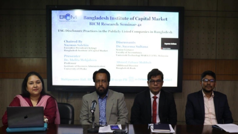 বিজ্ঞপ্তিতে বলা হয়, সেমিনারে “ESG Disclosure Practices in the Publicly Listed Companies in Bangladesh”-শীর্ষক মূল প্রবন্ধ উপস্থাপন করেন ঢাকা বিশ্ববিদ্যালয়ের ইন্সটিটিউট অব বিজনেস এডমিনিস্ট্রেশন (আইবিএ) -এর অধ্যাপক ড. মেলিতা মেহজাবিন।