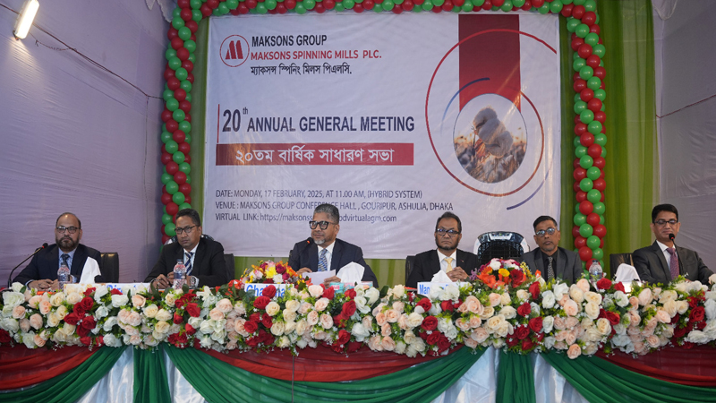 পুঁজিবাজারের তালিকাভুক্ত কোম্পানি ম্যাকসন্স স্পিনিং মিলস পিএলসির ২০তম বার্ষিক সাধারন সভা অনুষ্ঠিত হয়েছে। সোমবার (১৭ ফেব্রুয়ারি) সকাল ১১টায় হাইব্রডি মাধ্যম্যে কোম্পানিটির চেয়ারম্যান মোহাম্মদ আলী খোকন এর সভাপতিত্বে অনুষ্ঠিত এই সভায় পরিচালক পর্ষদের সদস্যগনসহ বহু শেয়ারহোল্ডার স্বশরীরে এবং অনলাইনে সংযুক্ত ছিলেন।
