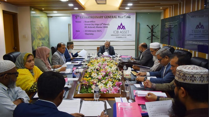 আইসিবি অ্যাসেট ম্যানেজমেন্ট কোম্পানি লিমিটেডের ৫ম বিশেষ সাধারণ সভা অনুষ্ঠিত হয়েছে। কোম্পানির পরিচালনা বোর্ডের চেয়ারম্যান প্রফেসর আবু আহমেদের সভাপতিত্বে বৃহস্পতিবার (২০ ফেব্রুয়ারি) কোম্পানির প্রধান কার্যালয়ে অনুষ্ঠিত হয়।