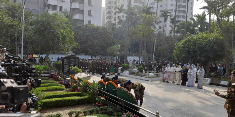 মঙ্গলবার (২৫ ফেব্রুয়ারি) সকাল ৯টায় বনানীর সামরিক কবরস্থানে শায়িত পিলখানায় শহীদ সামরিক কর্মকর্তা ও সদস্যদের কবরে পুষ্পস্তবক অর্পণ করেন তিনি।
