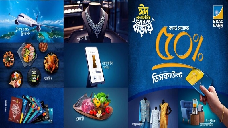 রমজান ও ঈদ কেনাকাটায় ১ জাহার ২০০ টিরও বেশি আউটলেটে ব্র্যাক ব্যাংক দিচ্ছে এক্সক্লুসিভ অফার বিভিন্ন ক্যাটাগরিতে কার্ডহোল্ডাররা পাবেন ৫০ শতাংশ পর্যন্ত ডিসকাউন্ট।