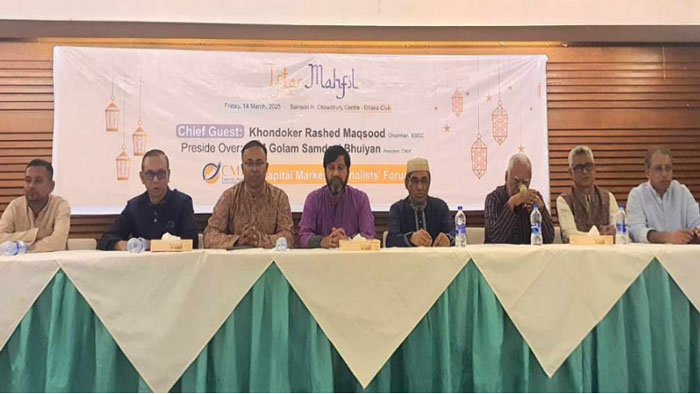 শুক্রবার রাজধানীর ঢাকা ক্লাবে অনুষ্ঠিত ক্যাপিটাল মার্কেট জার্নালিষ্টস ফোরামের (সিএমজেএফ) ইফতার মাহফিলে প্রধান অতিথির বক্তব্যে তিনি এ কথা বলেন।