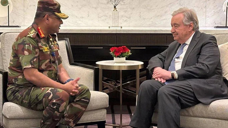 সফররত জাতিসংঘের মহাসচিব আন্তোনিও গুতেরেসের সঙ্গে সৌজন্য সাক্ষাৎ করেছেন সেনাবাহিনী প্রধান জেনারেল ওয়াকার-উজ-জামান।