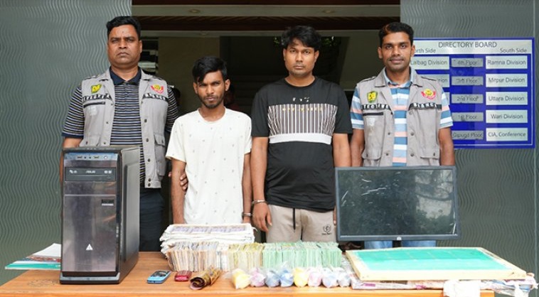 রাজধানীর ওয়ারী থেকে বিপুল পরিমাণ দেশি-বিদেশি জাল নোট ও তৈরির সরঞ্জামসহ মো. সাইদুর রহমান (৩২) ও মো. মেহেদী হাসান (২৫) নামে দুজনকে গ্রেফতার করেছে ঢাকা মহানগর গোয়েন্দা পুলিশ (ডিবি)।