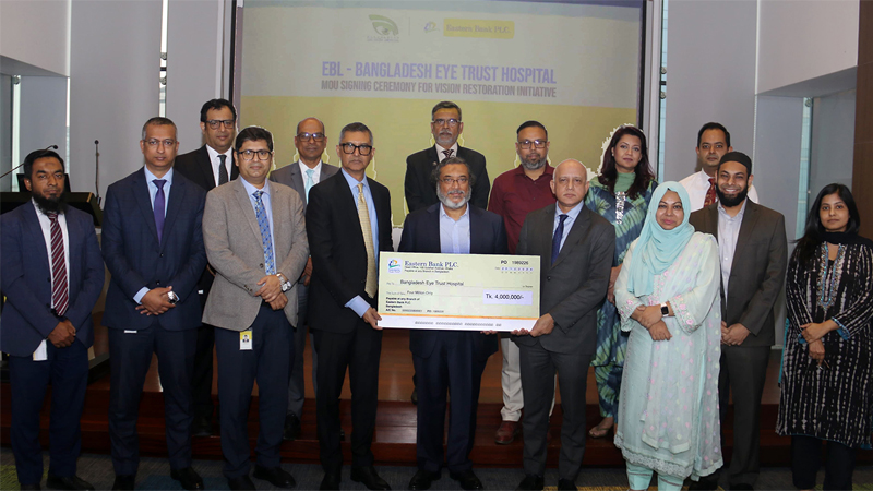 দেশের সুবিধাবঞ্চিত মানুষদের বিনামূল্যে ক্যাটারেক্ট সার্জারিসহ অন্যান্য গুরুত্বপূর্ণ সেবা প্রদানে বাংলাদেশ আই ট্রাস্ট হসপিটাল কে সহযোগিতা করবে ইস্টার্ন ব্যাংক। এ লক্ষ্যে ব্যাংকটি তার সিএসআর এর অংশ হিসেবে বিইটিএইচ’কে চল্লিশ লক্ষ টাকা প্রদান করেছে।