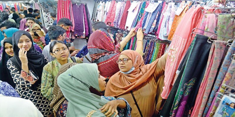 ঈদের বাজারে পোশাক বেচাকেনা এখন তুঙ্গে। বাজারে দেশীয় পোশাকের প্রাধান্যই বেশি। গত এক দশকে দেশের বড় উদ্যোক্তারাও পোশাকের নিজস্ব ব্র্যান্ড গড়ে তুলেছেন। তবু ক্রেতাদের চাহিদার কারণে ঈদের আগে প্রতিবছর ভারত ও পাকিস্তান থেকে তৈরি পোশাকের আমদানি বাড়ে। ভারত থেকে গত তিন মাসে ১৩ লাখ ২৯ হাজার পিস পোশাক আমদানি হয়েছে। এসব পোশাকের শুল্কায়িত মূল্য ৪৫ কোটি টাকা। গত রোজার আগে একই সময়ের তুলনায় এই সংখ্যা প্রায় সাড়ে চার লাখ পিস কম।